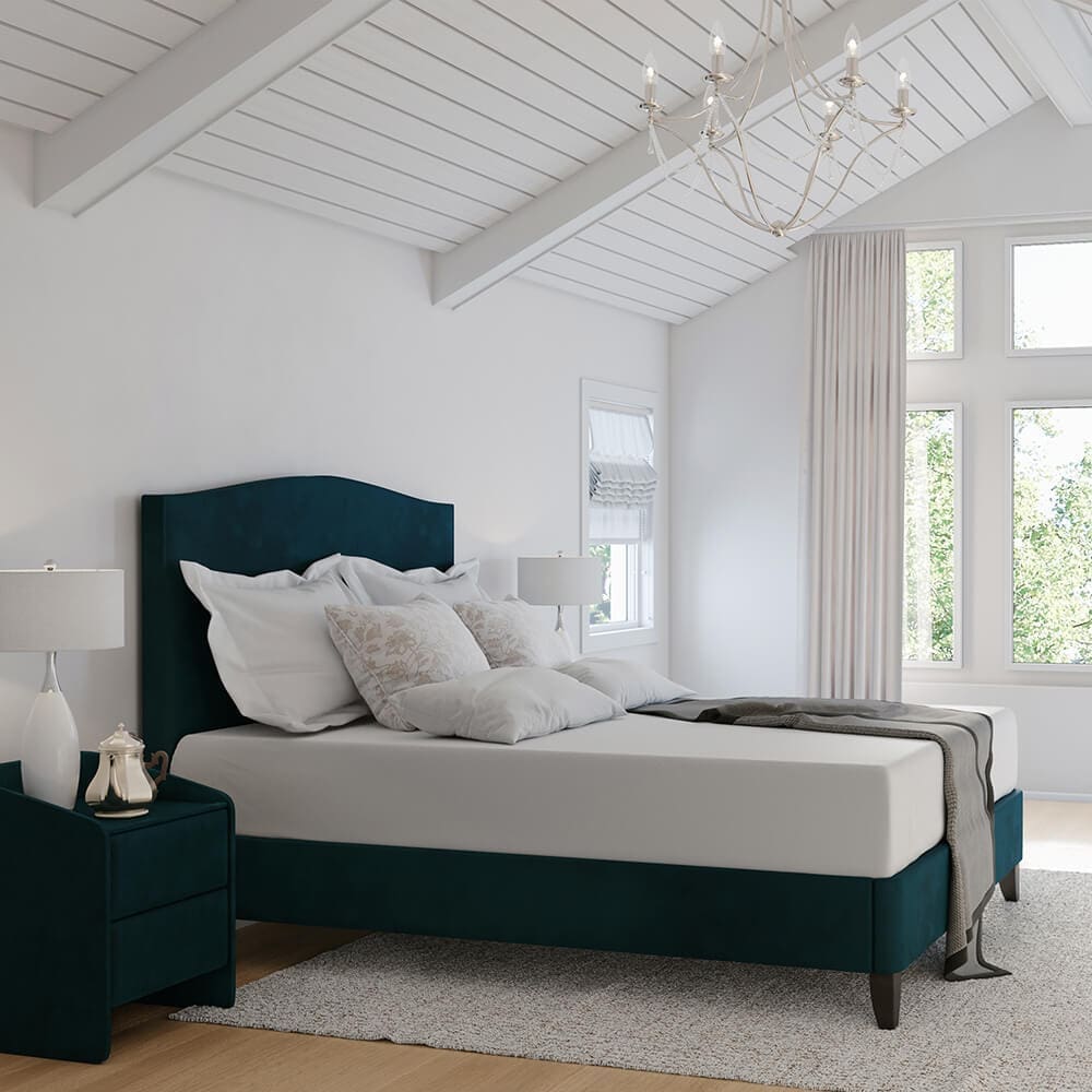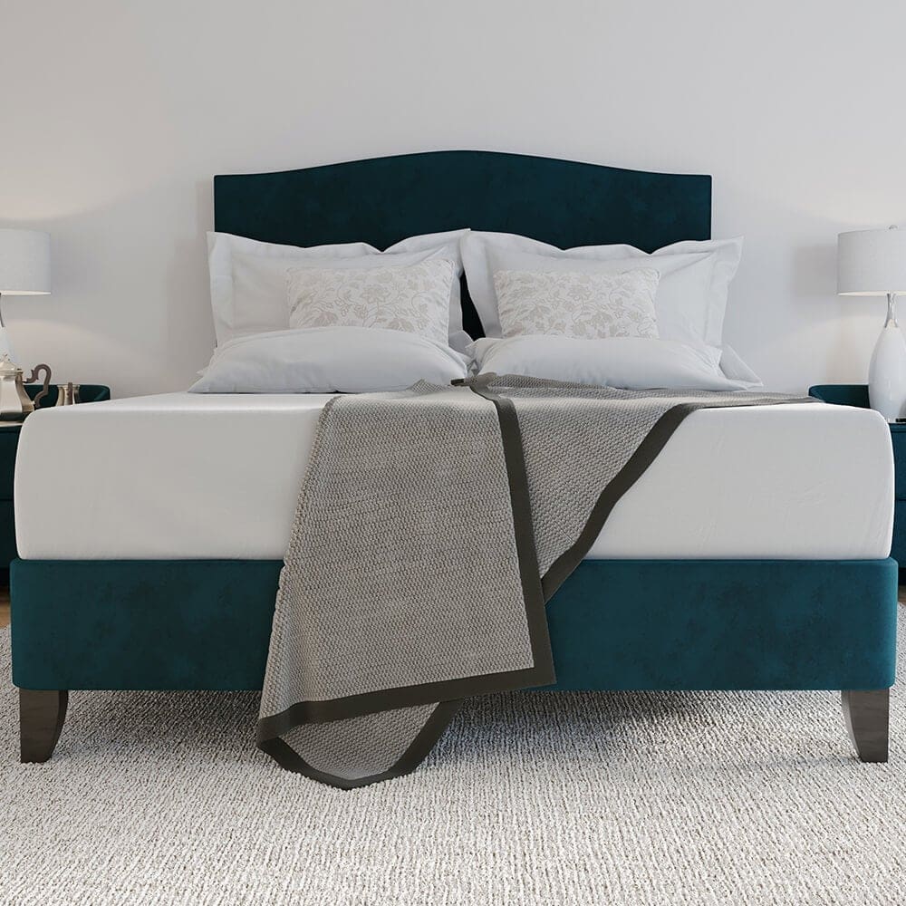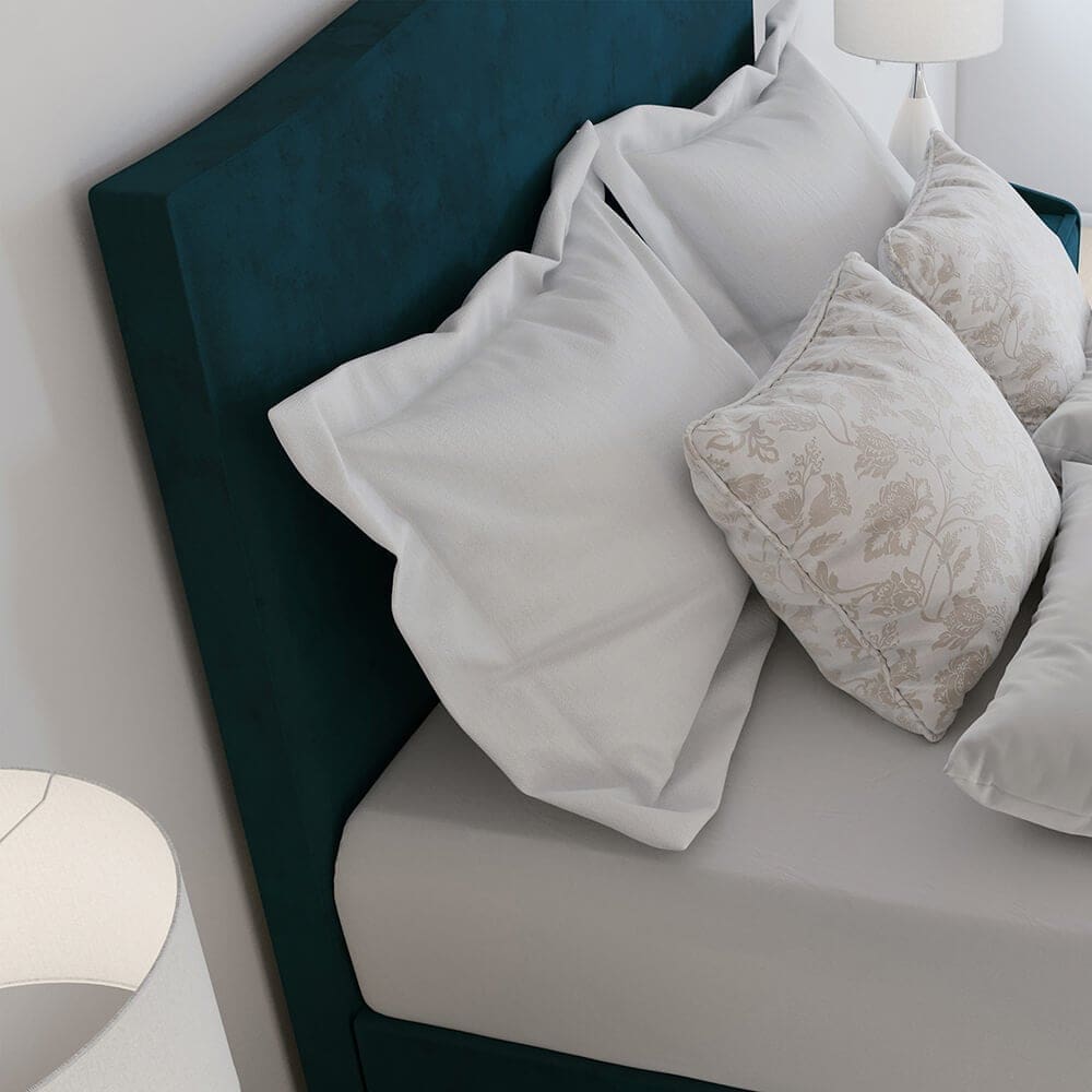 This contemporary bed features a sleek modern design. Available in a range of stunning fabrics and leg options to suit any bedroom.