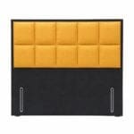 A striking headboard of two rows of square panels, set within a border upholstered in either contrasting black fabric, midnight 800, as standard, or optionally in the same fabric as the squares.