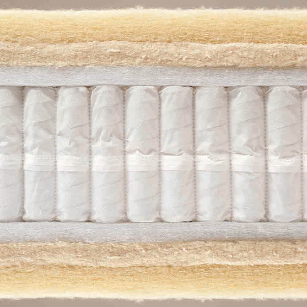 Handcrafted using a combination of ethically sourced and traceable fibres such as RWS certified British wool, natural Talalay latex, Himalayan allo, kapok and cotton.