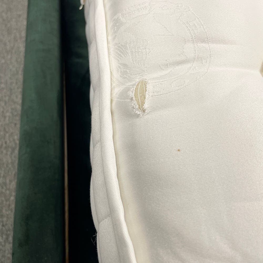 This mattress has been returned to us under the terms and conditions of our sleep trial and is in a good condition. There are some small defects shown in the photos