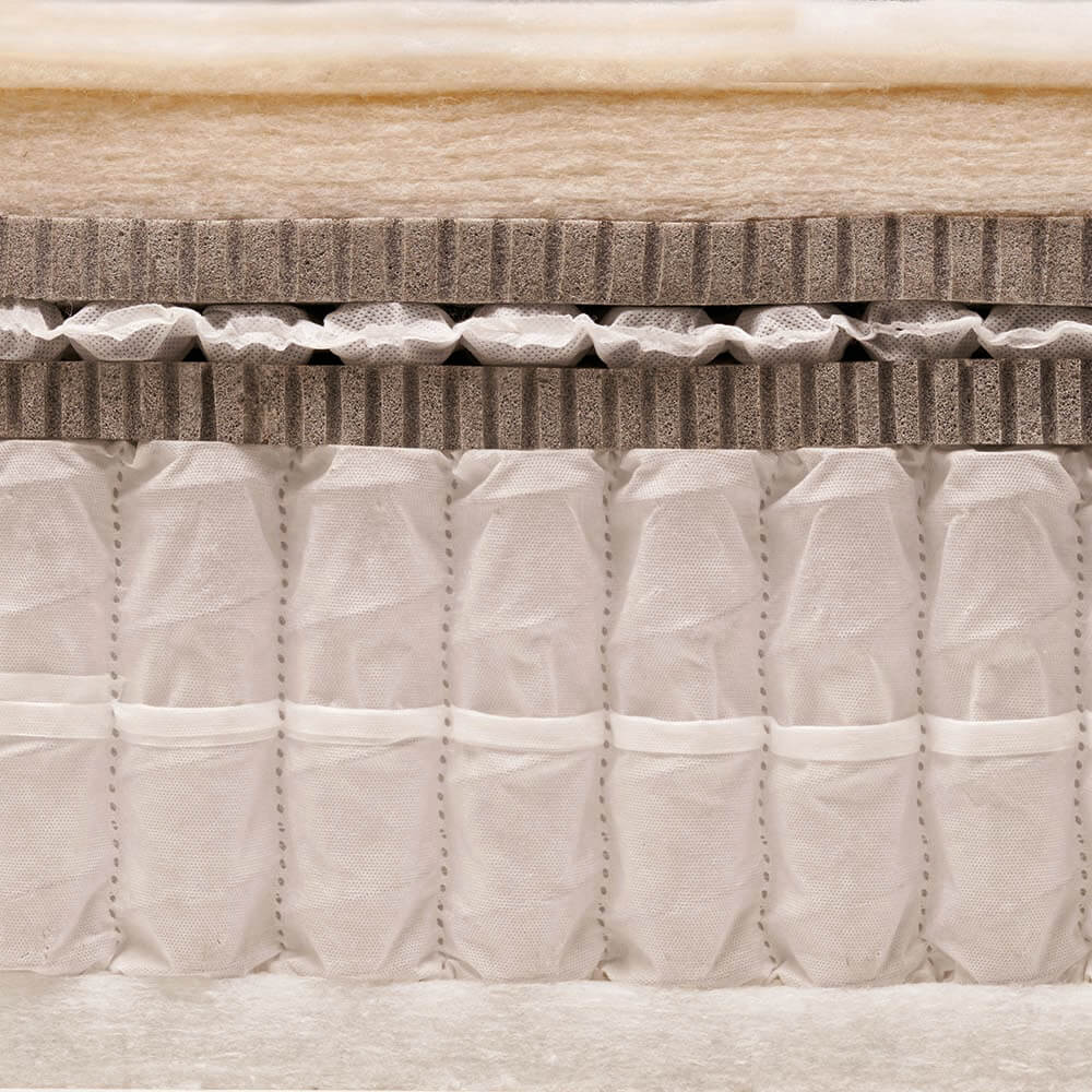 Handcrafted and upholstered with layers of soft Solotex™, up to two fleeces of British wool traceable to the farm and certified to the Responsible Wool Standard, Adaptiv™ comfort springs and a responsive Talalay latex layer. All atop another plump layer of natural Talalay latex.