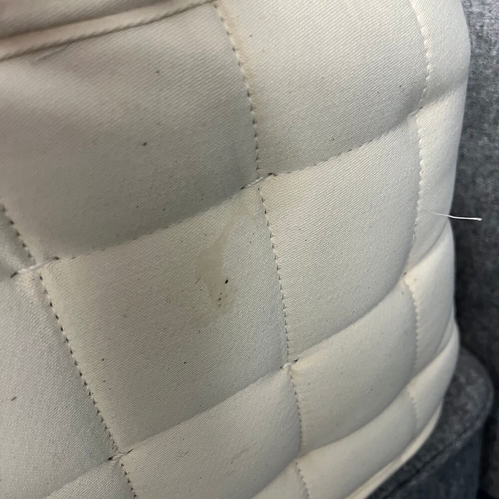 This mattress has been returned to us under the terms and conditions of our sleep trial and is in a good condition. There are some small defects shown in the photos