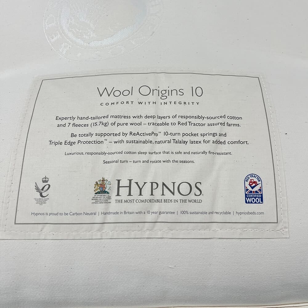 Hypnos Wool Origins 10 Mattress Firm Clearance: Standard Super Kingsize – 180x200cm