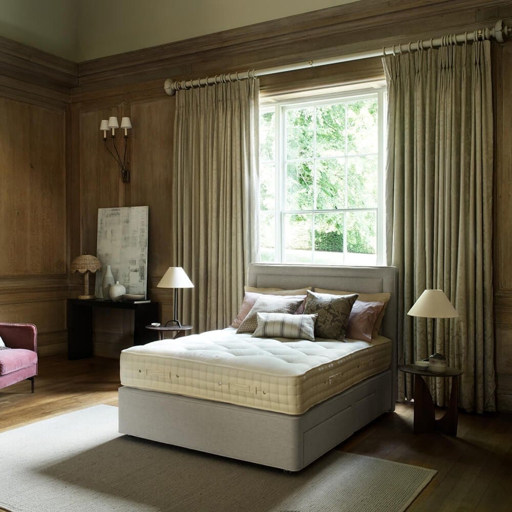 Hypnos offers both sprung or platform top divans – platform top divans provide a highly supportive base for a firmer feel, whilst a sprung base works in harmony with the mattress to provide a more medium feel.