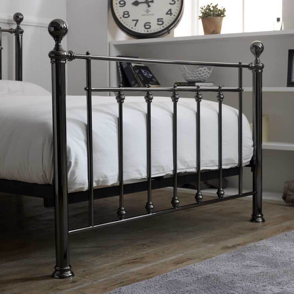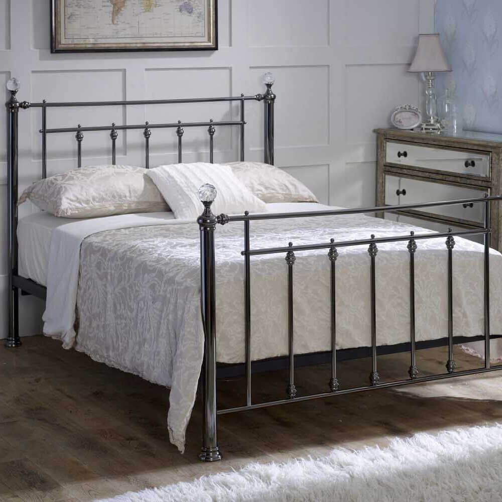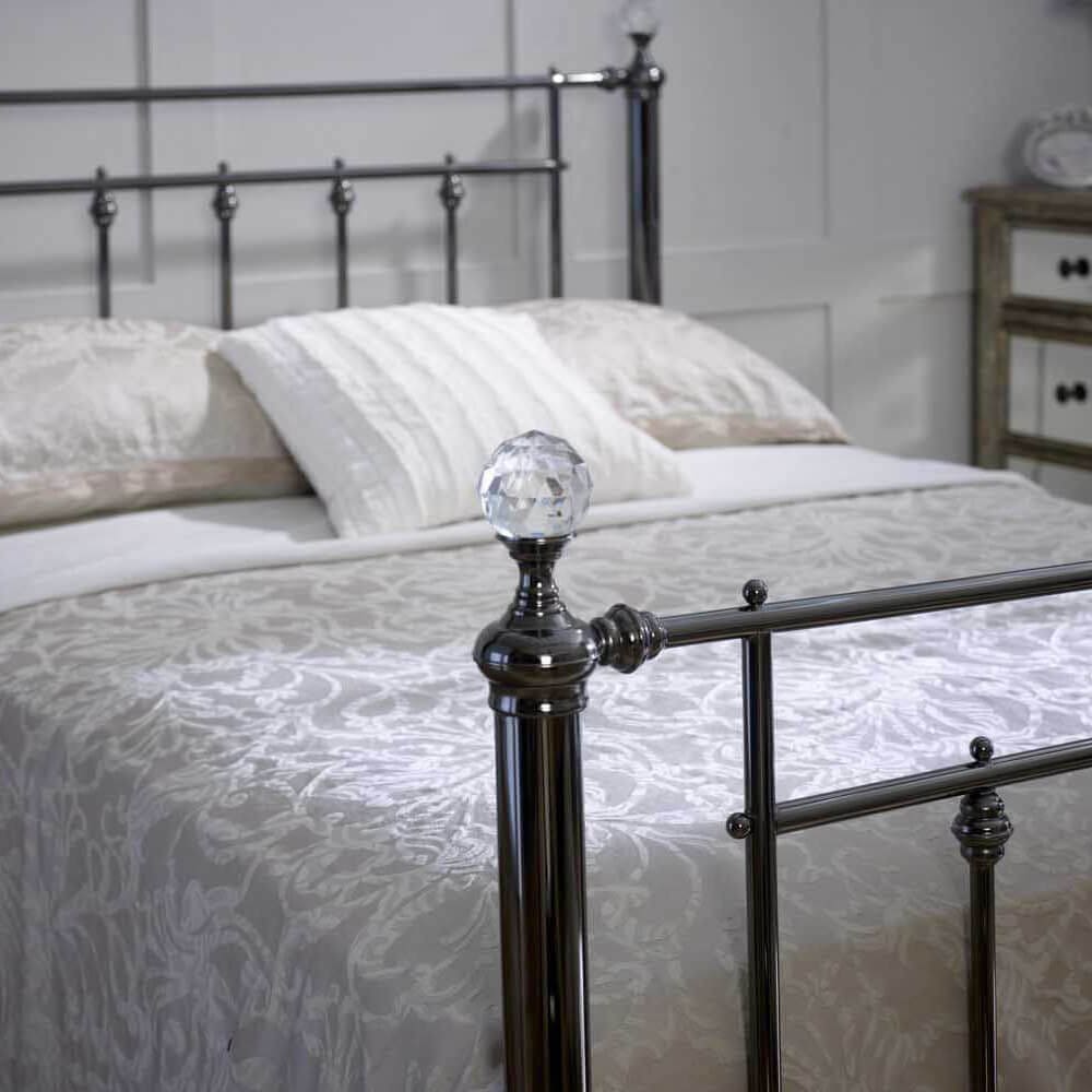 A classic design finished in black chrome, this bedstead is as pretty as it is practical. Choose your finials to add the personal touch.