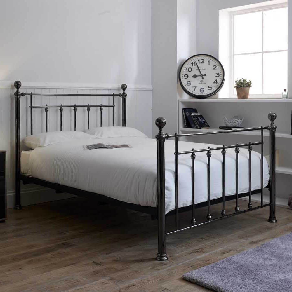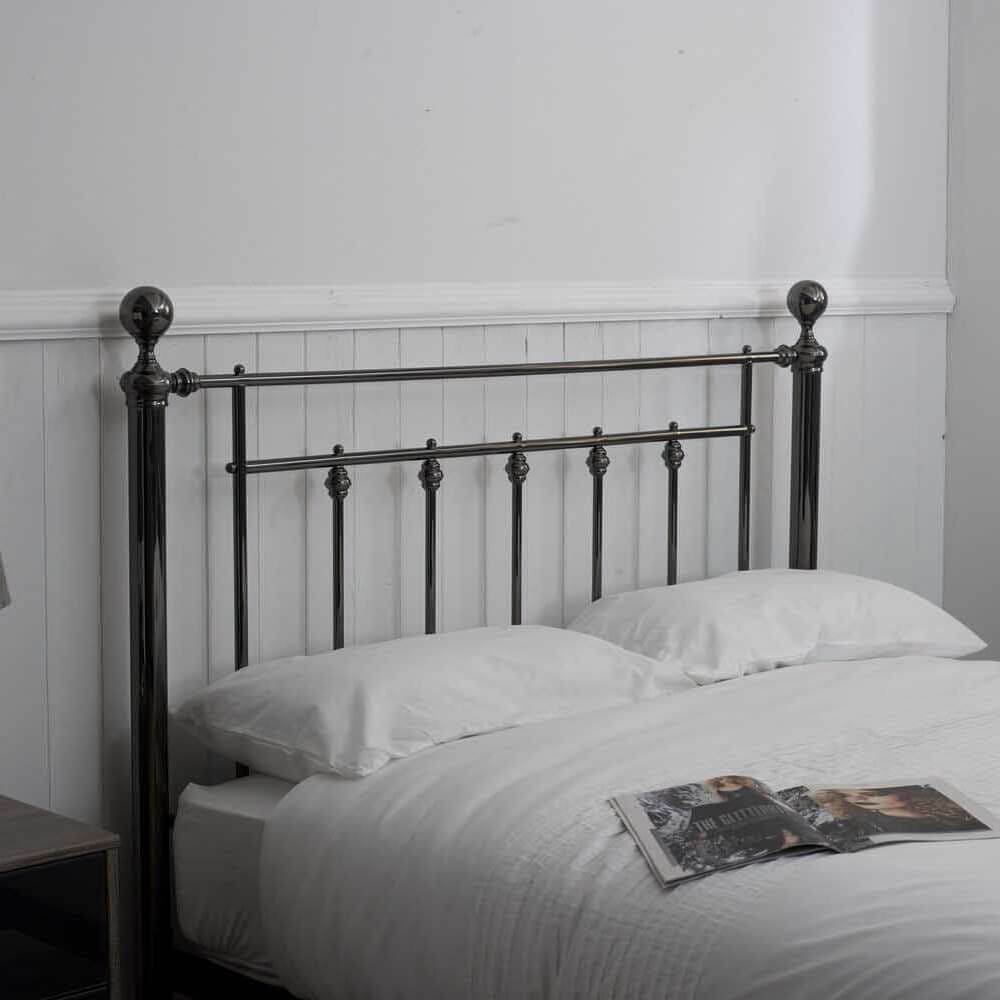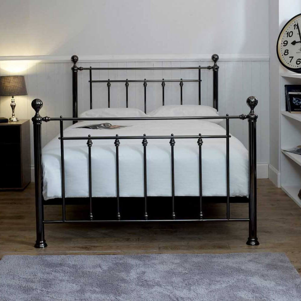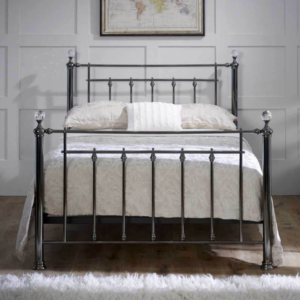 A classic design finished in black chrome, this bedstead is as pretty as it is practical. Choose your finials to add the personal touch.