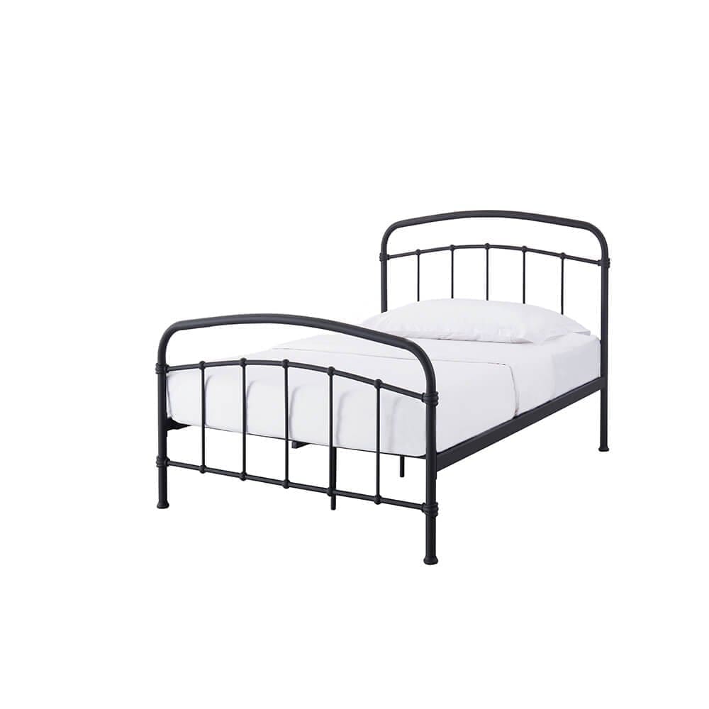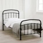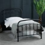 The Halston Bed offers the perfect solution for those wanting to inject some industrial style chic into their home. This traditional design has subtle casting details and ornate features that are complemented by the matching curved rails on the head and foot boards. Gently curved sprung slats enhance comfort and make up the base of the frame. With a strong and sturdy metal frame in a black effect painted finish, it’s a fantastic choice for both modern and traditional bedrooms.
