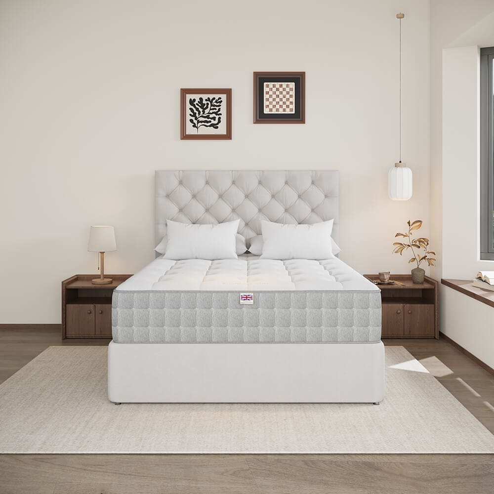 The Serenity 2500 mattress combines premium natural materials and advanced sleep technology to deliver exceptional comfort and support. Handcrafted in the UK, it features ErgoZone7 springs, natural fillings, and Smooth-Tech™ tuft-free technology.