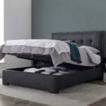 The Aruba bed offers a blend of classic elegance and functionality, with a luxuriously padded, buttoned headend. Its hydraulic assisted lift-up system opens to a spacious ottoman storage, combining sophisticated design with practicality.