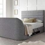 The Kingston TV Ottoman epitomizes modern comfort and convenience, designed for the contemporary bedroom. It features a modern design with a horizontal stitch padded headend and a stylishly curved base, which not only enhances the aesthetic appeal but also cleverly conceals a TV within its structure. The slim footend is perfectly engineered to accommodate up to a 43″ TV, merging luxurious relaxation with entertainment seamlessly.