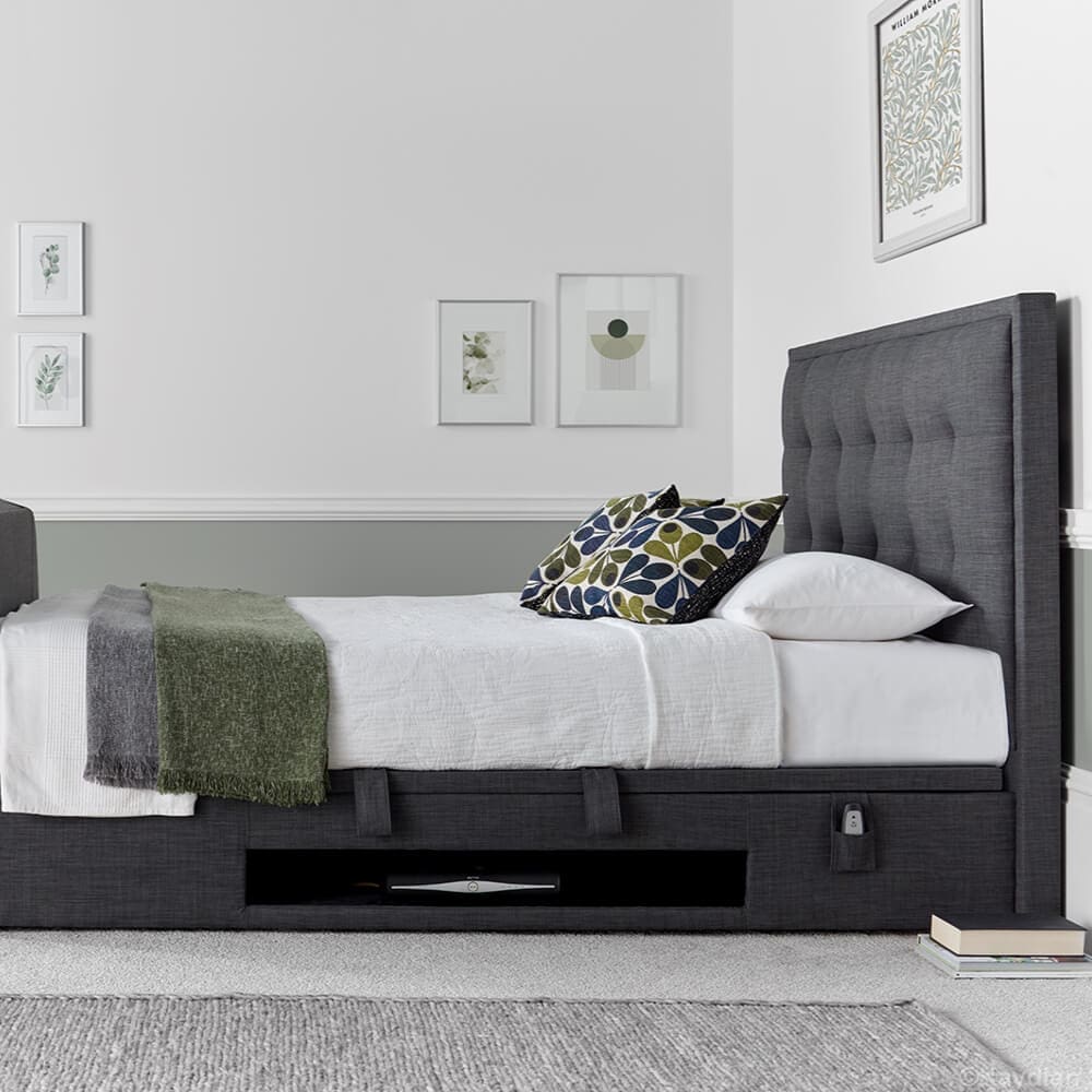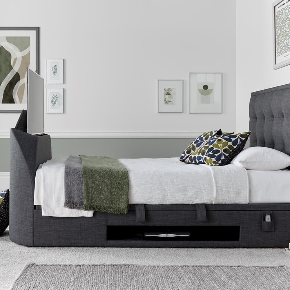 Reimagining bedroom luxury, the Sonora TV bed combines a classic design with modern features, concealing a TV up to 43″ within its structure. Its spacious ottoman storage and ventilated base offer both style and functionality, making it an ideal choice for a blend of elegance and convenience.
