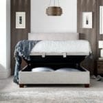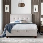 The Warsaw bed is a testament to timeless design, featuring a handcrafted button effect headend. Its hydraulic assisted lift-up system and ventilated base offer a modern twist on classic elegance, providing substantial storage and ensuring a comfortable sleep environment.