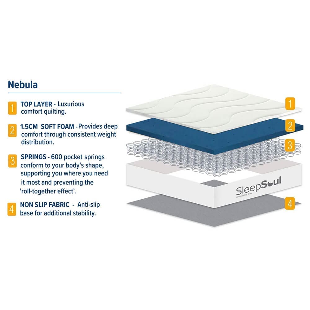 The SleepSoul Nebula mattress is the answer to achy joints, restless nights and grumpy mornings. Sink into the foam to experience true comfort — all night, every night.