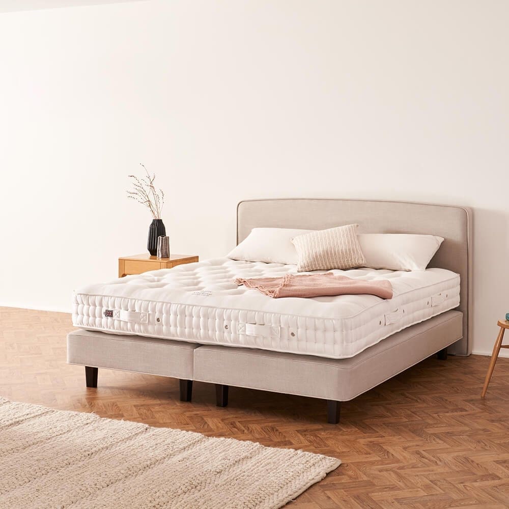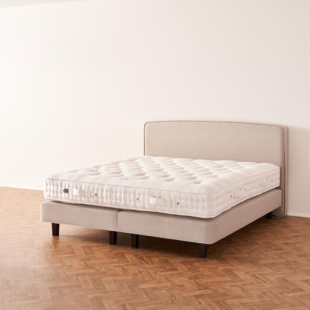 Hand-nested pocket springs inside a solid timber frame. The De Luxe comes upholstered in coir, cotton and British fleece wool.