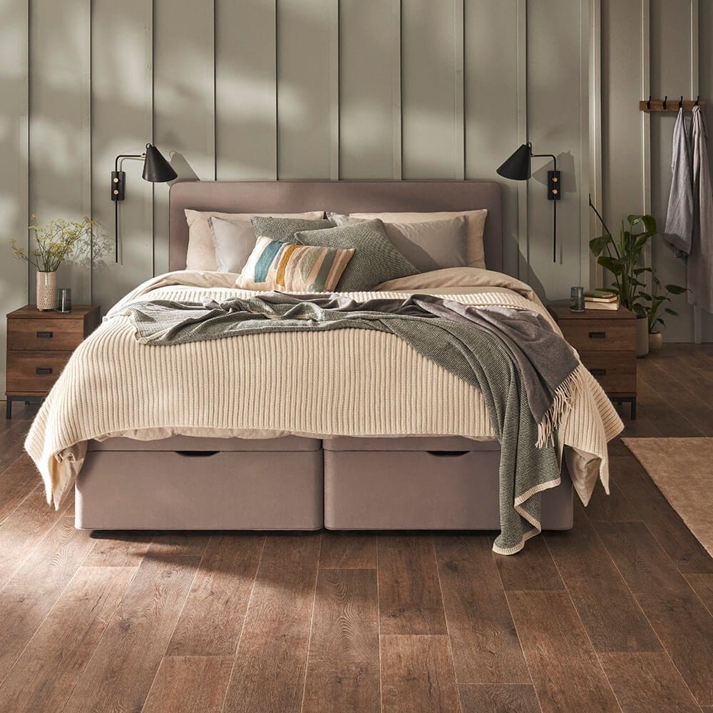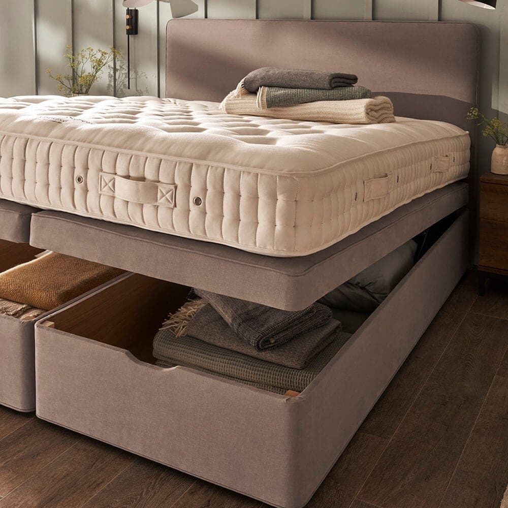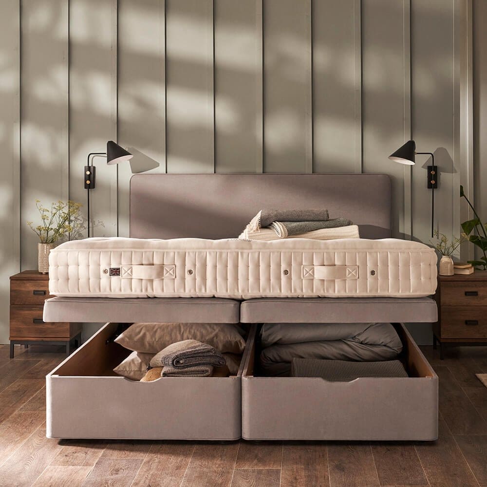 Fusing functionality with a contemporary aesthetic, the brand-new Ottoman divan from Vispring features an end-opening that lifts up, with the help of gas struts, to reveal ample storage space. The Europa Ottoman divan is constructed using carefully nested pocket springs in a sustainable timber frame that create a responsive layer that works in harmony with the mattress above.