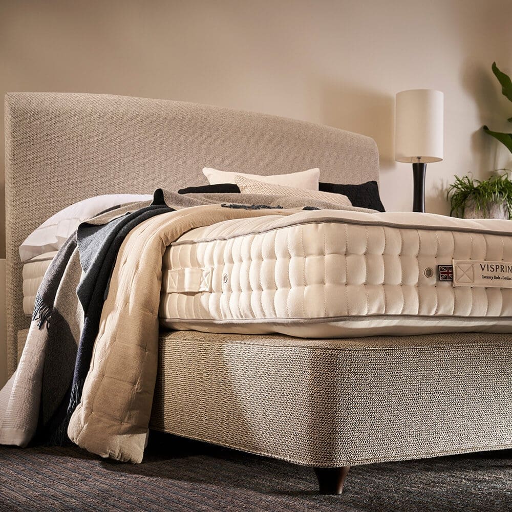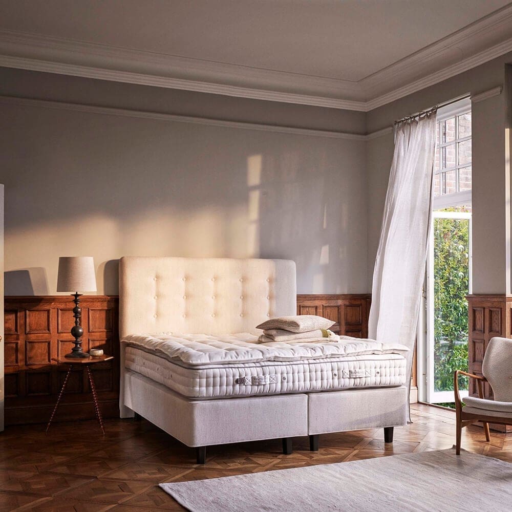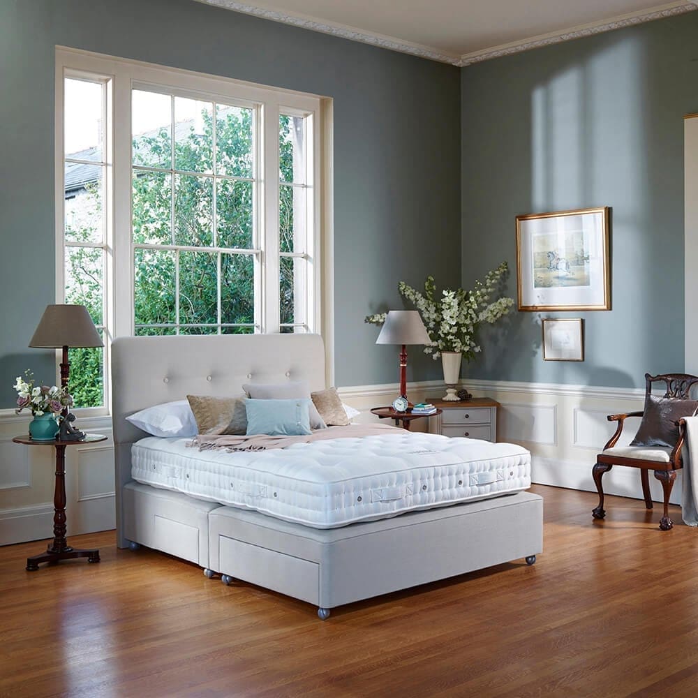 The Prestige divan it built around a solid timber frame and upholstered in coir, British fleece wool and cotton.