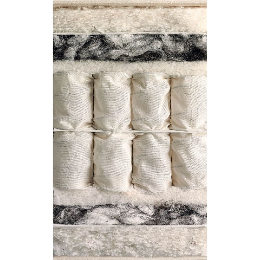 Built with a solid timber frame and a layer of pocket springs. On the outside, it’s finished with coir, British wool and cotton.